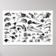 This chart was drawn over 100 years ago by “Millot” and included in an encyclopaedia set. The images include bills of 50 different species of birds, a fossil, and one lonely turtle. Great for biologists and the bird lovers!