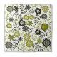 Floral Pattern of stylised images of flowers and branches in dark olive green and chartreuse colours.