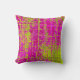 A richly textured abstract in shades of chartreuse, olive green, raspberry, pink and fuchsia makes this an eye catching throw pillow.