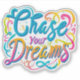 The Chase Your Dreams sticker features bold, uplifting typography with a clean, modern flair that sparks motivation at first glance. Its vibrant design and smooth finish make it a standout on any surface. Perfect for adding a touch of inspiration to your daily routine!