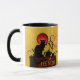 Mug with "Black Cat and Black Tea" is based off Théophile Steinlen's black cat posters for "Le Chat Noir" club. This design features his famous black cat sitting on an ivy-covered brick wall with a large cup of tea and a teapot. There is a bright red full moon.