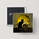 A silhouette of Théophile Steinlen's black cat for the Le Chat Noir club in a modern setting with a bright yellow moon, grey wall with ivy, a spider, a bat, and a jack-o-lanterns.