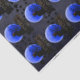 A silhouette of Théophile Steinlen's black cat for the Le Chat Noir club in a modern setting for Valentine's Day featuring the black cat with a single red rose and a blue moon.