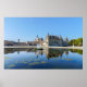 View of the Chateau de Chantilly from Le Notre Garden with a fountain in the foreground and reflection of the castle in a pond - France