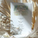 The coordinating back continues the story with a tranquil lakeside vignette: the château is seen from across the water, framed by rows of manicured trees and clipped topiary that reflect in the glassy surface of the pond. Above the customizable “Finer Details” text, the loose watercolor edges and gentle color transitions capture the romantic atmosphere of a French countryside garden. All text is fully editable, making this suite ideal for château weddings in France, European destination celebrations, or any couple who loves stately architecture and classic French garden design rendered in a soft, painterly style.