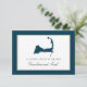 Map of Cape Cod in Navy Blue with Red heart over Chatham, Massachusetts. Perfect for your Wedding Thank You cards. Add two lines of text on the font or click on Customise it to add more wording on the inside or cover. For enquiries about custom design changes by the independent designer please email paula@labellarue.com BEFORE you customise or place an order.