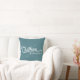 This throw pillow features the text Chatham, Massachusetts in a white nautical font with starfish accents. The background is shade of teal green, but can be changed to any colour of your choice. Perfect for beachy, coastal or nautical theme decor.