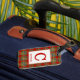 Luggage tag with the Clan Chattan tartan, a colourful traditional Scottish plaid pattern in bright red, green, yellow, and light blue, with black and white accents. Personalise with your initial and name on a light coloured plate for easy legibility.