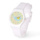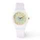 Chaucer the yellow rubber ducky floats among the bubbles in a bathtub, waiting for his next adventure. This watch is available in a variety of sizes, colours, and styles, including sizes for both kids and adults.