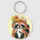 Desenho de um guaxinim fofo segurando uma flor amarela.