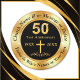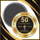 Designer Linda can CHANGE the "50" to ANY YEAR, Change the DESIGN, OCCASION and ALL the COLORS including the Gold Border, Cross, Swirls, 50 and Text.