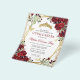 Modern Glam Floral Botanical Burgundy Maroon Red Gold Tiara Sparkle Glitter RSVP Birthday Quinceañera Invitation