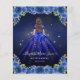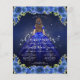 Floral Royal Blue Navy Blue Princess Gown Dress Gold Glitter Sparkle 15th Birthday Quinceanera Invitation