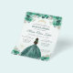 Budget Emerald Green Gold Floral Princess Tiara Crown Quinceañera Invitation