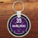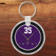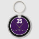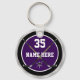 Cheap Hockey Keychains in Your Team Colours and Text or Delete it. Personalised Cheap Hockey Gifts for boys and girls. Shown is Purple and White Hockey Key Rings. You or Designer Linda can CHANGE the purple and white background and text to your team colours.
