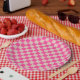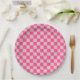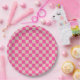 Check Coral Pink Chequered Pattern Chequerboard Paper Plate