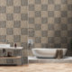 A warm neutral crackled paint texture in a chequerboard pattern evokes an aesthetic vibe for traditional, cottagecore, and farmhouse to bohemian and gothic styles. Check Crackle Texture Beige And Taupe Wallpaper