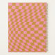 Chequered Pattern – pink and mustard twisted / wavy / warped chequerboard.