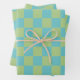 Checkerboard Checkered Pattern in Blue and Green Wrapping Paper Sheets
