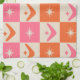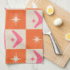 Checkered Mid Century Boomerangs pink and orange Tea Towel