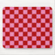 Abstract digital art of red and hot pink squares in a checkered formation. With the ability to change the pink squares by changing the background color to match the red squares.