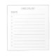 Custom checklist notepad, including the date, to help get things done. Includes forty tear away pages with hard cardboard backing.