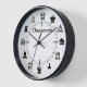 An elegant and simple chess inspired wall clock with graphic chess pieces representing the hour markers and chequered pattern indicating the minutes on a clean white background. The customisable text makes this time piece a great personalised gift idea for the chess playing enthusiast.