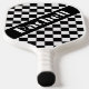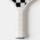 This paddle design brings graphic punch with a bold black-and-white chequerboard layout. A sharp diagonal stripe cuts across the grid, adding visual tension and sleek symmetry. The white text pops with clarity and character, balanced by a crisp grip that blends texture with simplicity. It’s perfect for players who love contrast, movement, and the satisfaction of standing out—one serve at a time.