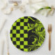Checks and Swirls - Lime Green and Black Paper Plate