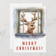 Explore the enchantment of the holiday season through our personalised Christmas card, featuring a delightful watercolor illustration capturing an endearing reindeer playfully peeking through a window, adding a touch of whimsy to your greetings. Customise this beautifully crafted card with your own message, evoking the magic of the holidays and spreading warm wishes with artistic elegance. Share this unique and cherished delight with your loved ones, celebrating the joy of the season.