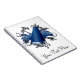 Blue and and silver poms and megaphone are encircled by the words "Cheer Loyalty Strength Pride Spirit"