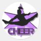 Cheer in purple classic round sticker