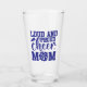 This beer glass is shown with a cheer mum print.