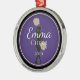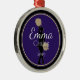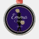 This ornament has a black shadow of a cheerleader with Gold pompoms. Sample text of Emma, Cheer and your choice of date [shown 2019]. Colours shown are Purple, Gold-like colour, White and Black. Nice choice for a spirit award or team medallion if you lengthen the ribbon or a nice keepsake ornament for your Christmas tree [which it is].
