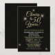 You're invited to celebrate 50 years of love and memories! Join us for an unforgettable evening as we raise a glass and say "Cheers to 50 years!" An elegant night awaits you with modern gold accents on a sleek black background, symbolizing the timelessness of our journey together.