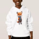 A hoodie with this charming fox design is perfect for any animal lover. This design features a friendly cartoon fox wearing a jacket with a hoodie, making it an adventurous and playful visual art.