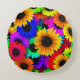 Cheerful Array of Colourful Sunflowers Round Cushion