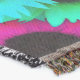 A quality printed throw has its advantages. This is a much finer weave throw than its loopier cousins, and though lighter, it is worth the investment for custom room accessorizing. The back is much prettier than the typical brown, and the fringe on the long sides very vivid, the selvage nicely done. Before photographing, I washed the throw in cold water, delicate, with a thicker woven throw the same size. On tumble dry low, this throw was dry in half the time as the other. This is a very practical quality if you use throws for furniture covers or to wrap up in frequently. The sleekness of the fabric makes it a great layer for accenting or protecting without the feeling of sitting on too much stuff. Perfect for napping or when you feel a light chill coming on. The color printing is beautiful and on this fabric, matched the design and color of my Photoshop image. This is an advantage for blending room fabrics and colors. The fringe on the short sides prints the colors from the design image and therefore varies from the side fringe. I streaked a white fractal line through the plaid pattern to give the illusion of weaving. This printed as crisp as an illusory thread, and put some white in the short side fringe, showing another advantage of print vs loomed- for artistic purposes, line lines, detail, and color integrity can be planned and preserved. My loomed throws have color limitations and more of a needlepoint texture. Print throws reproduce an exact image. The throw felt a little stiff straight out of the package, but this went away in the first delicate wash. Of course I searched the wash water for ink or bleeding and there was none.