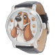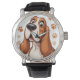 Cheerful Basset Dog with Orange Pawprints Watch