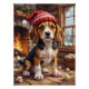 Cheerful Beagle Puppy in Stocking Cap Cozy Poster