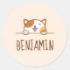 Cheerful Calico Cat Peeking above Custom Name Classic Round Sticker