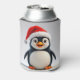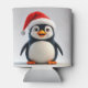 Cheerful Cartoon Penguin Wearing Santa Hat Can Cooler