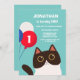 Cheerful Cat Party Balloon Kids Birthday Invitation