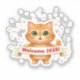 Welcome the year with positivity and cuteness! This adorable cat sticker features a cheerful feline holding a festive banner that says "Welcome 2026!", set against a bright confetti background. This decal brings instant joy and is perfect for decorating your planner, journal, or using as a fun party favor. A must-have New Year celebration sticker for any cat lover!