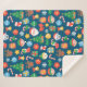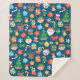 Cheerful Christmas Pattern on Blue Sherpa Blanket