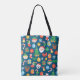 Cheerful Christmas Pattern on Blue Tote Bag