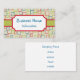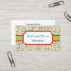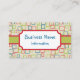 Bright, fun, squares decorate this business card. Customise the information on this business card to suit your needs, add or delete information as needed. The design is from original art. Use this business card for a preschool, pre-school, daycare, day care, childcare, child care, babysitting, nursery school, paediatrician, dentist, tutor, etc....