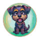 Vivid artwork showcasing a happy dog seated against a vibrant backdrop, adorned with stylish accessories, evoking joy and whimsy.