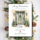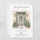 This festive moving announcement features the saying "Merry Christmas from Our New Home" with a beautiful watercolor front door adorned with Christmas trees, pine garland and wreath. The announcement is perfect for sending to friends and family during the holiday season to let them know about your new address. The front of the announcement features the saying and watercolor green front door, and includes your new address and contact information. The overall design is festive and inviting, and the announcement is sure to put a smile on the faces of your loved ones.