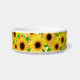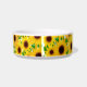 Original fine art design of cheerful yellow Sunflowers by artist Carolyn McFann of Two Purring Cats Studio printed on a quality pet food bowl.